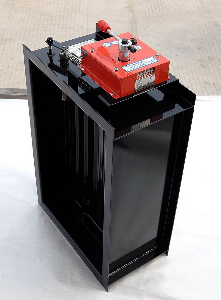 排烟阀安装在高层建筑、地下建筑排烟系统的管道系统各支管端部(烟气吸入口)处,平时呈关闭状态并满足漏风量要求,感温(烟)电信号联动,排烟风机同时启运;手动使阀门开启,排烟风机同时启动;输出阀门开启信号。火灾或需要排烟时手动和电动打开,起排烟作用的阀门。发生火灾时烟感探头发出火警信号,消防控制中心通过DC24V电压将阀门打开排烟,也可手动使阀门打开,手动复位。